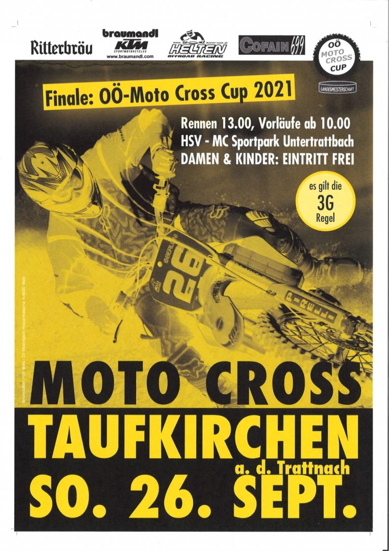 Am Sonntag, den 26. September 2021 wird das Finale zum OÖ Motocross Cup & Landesmeisterschaft in Taufkirchen an der Trattnach beim HSV-Wels ausgetragen.