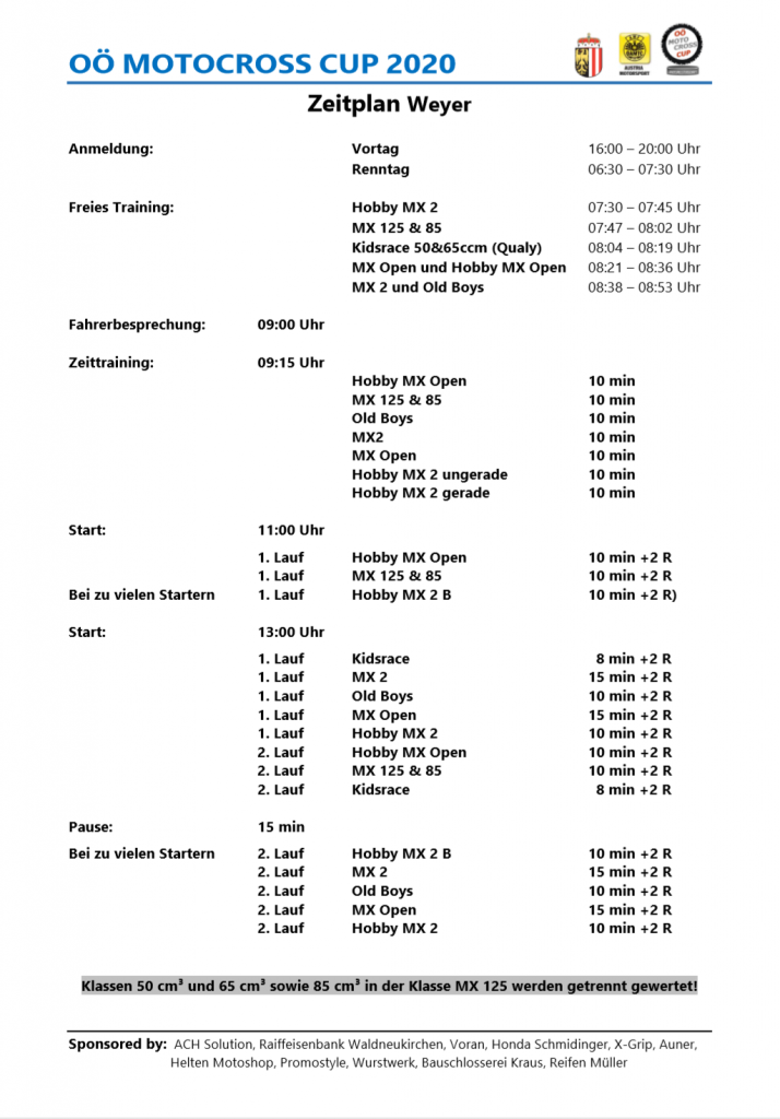 Weitere Infos zur Veranstaltung in Weyer: Aktuelle Nennliste Stand 12.05. 2021 ist auf unserer Website ooe-motocrosscup.at zu finden (wird laufend